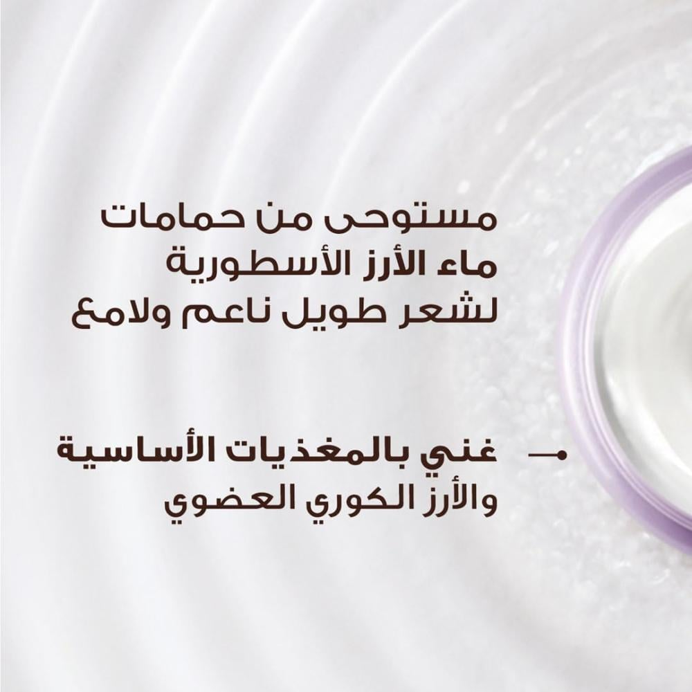 • بفضل تركيبته الغنية بماء الأرز المعروف بتأثيره المغذي، يعيد للشعر الطويل قوته ويمنحه كثافة ملموسة ولمعان صحي.